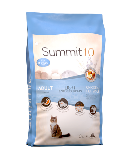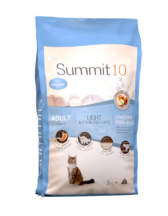 Concentrado para Gatos Adultos Esterilizados Summit10 Pollo Pescado y Arroz